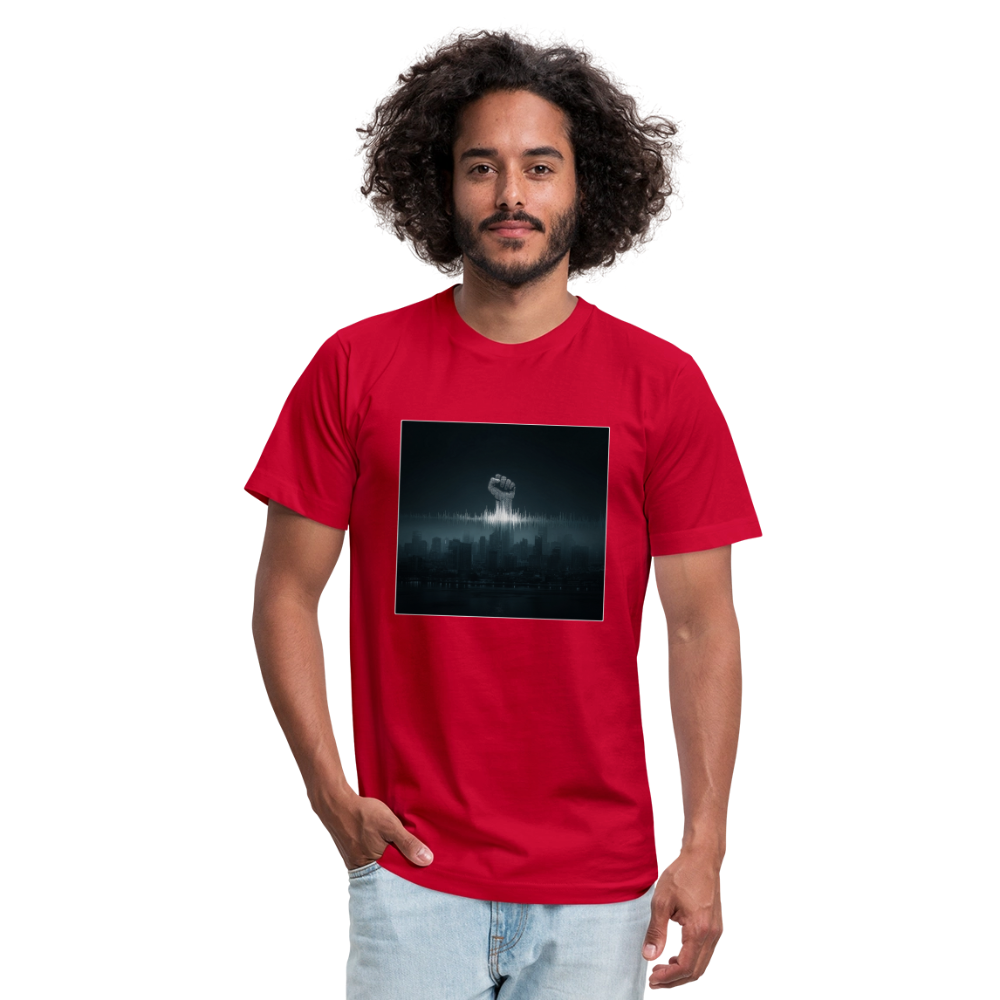 Turn the volume up on resistance. The Guerilla Beats for Equality tee features a dark city skyline pierced by a raised fist made of sound waves—a visual anthem for using music as a weapon for justice, unity, and change. Built for late nights, loud speakers, and peaceful disruption.